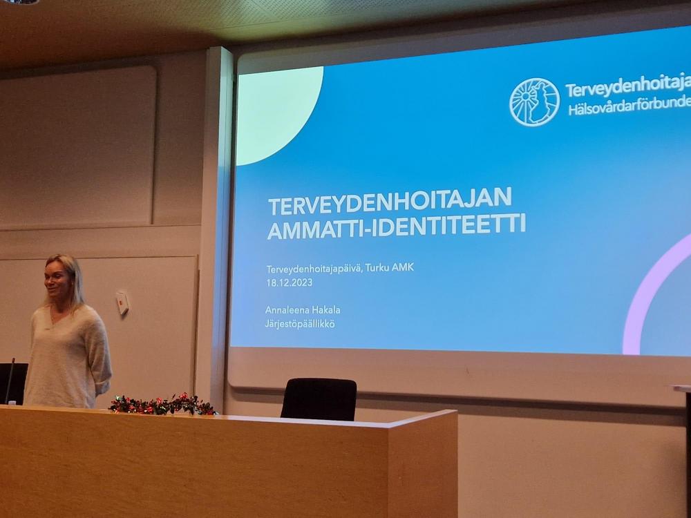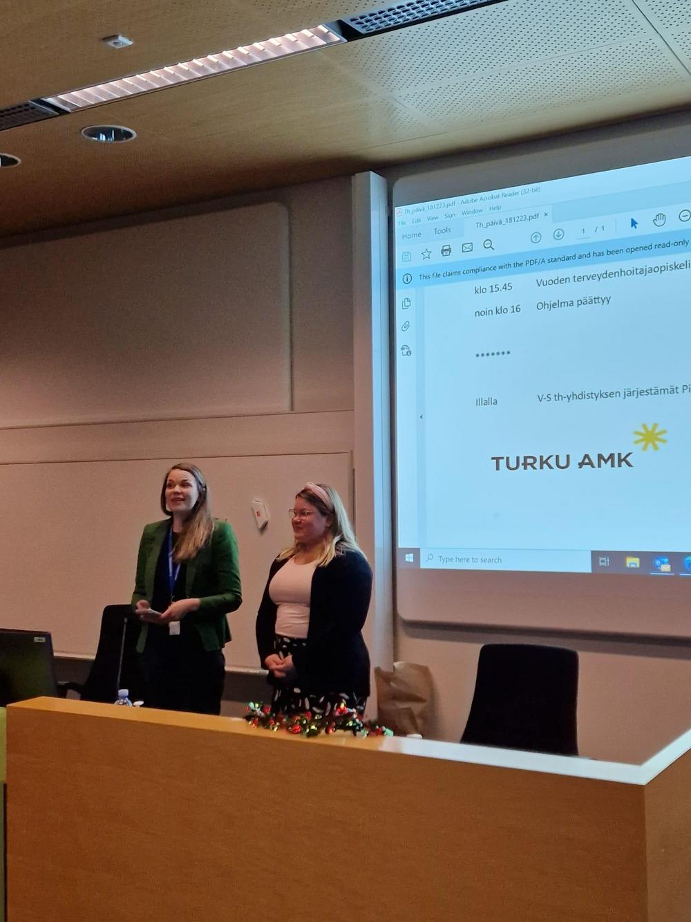 18.12.2023 Turun amk:n yhteisöllinen Terveydenhoitajapäivä, johon Varsinais-Suomen paikallisyhdistyksestä osallistui puheenjohtaja Lilli Priha-Iltanen sekä opiskelijavastaava Jonna Aronen.